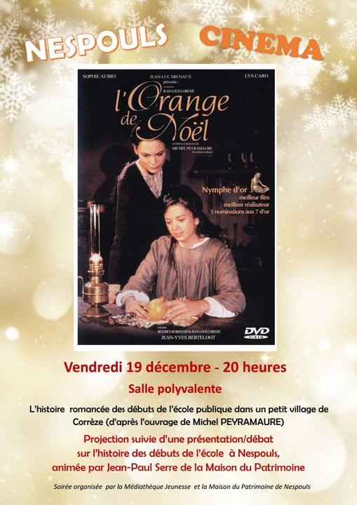Première partie : le film « L’orange de Noël » d’après le roman de Michel PEYRAMAURE, sur les débuts difficiles de l’école publique dans une petite commune de Corrèze.